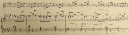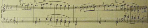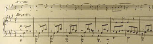另一例是琶音琴奏鳴曲第三樂章之主旋律A是: