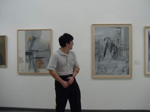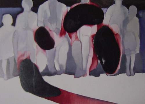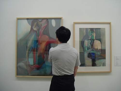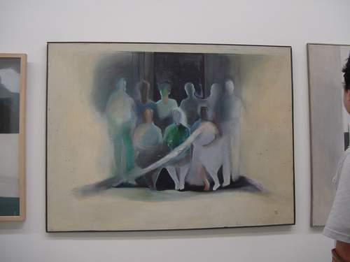 這次台北市立美術館展覽的「竹凳的移動-李錦繡紀念展」(2005.09.03-11.27),我第一次進展覽會場時,便對展覽李錦繡藝術的整體空間的設計,有非常深刻的印象,而後,我從《竹凳的移動-李錦繡紀念展》展覽專輯中發現,這次紀念展的策展人是當代藝術家王素峰女士,展場空間規畫有她細膩的設計意涵。我也非常感動於王素峰為了籌畫這次展覽,所做的種種預備,包括深入訪談跟李錦繡有關的親朋同學、整理李錦繡的手稿資料,以及最重要的,從藝術作品嘗試認識李錦繡這個人,其熟悉度從素昧平生到如同閨中密友,使我有很多的感觸。 當然,我這麼積極主動的想介紹李錦繡,一樣是因為她的藝術作品深深感動了我,它們彷彿在跟我說話、呼喚我一般,使我無法自拔的被作品吸引,因而能稍稍進入她的心靈世界,彷彿已成為她的朋友。 因此,在談到李錦繡的藝術作品之前,我想先把王素峰這位藝術家透過展場裝置,意圖呈現出來的李錦繡的創作心靈,跟大家分享,這些現場裝置,在我看來,本身也是藝術,是藝術家與藝術家之間的對話與共鳴。 王素峰在展示李錦繡作品第一分期主題「虛幻的人生」時,讓展覽室直接看到第三分期「自覺的舞動」的代表作品「生命」。 王素峰對李錦繡作品的理解是:虛幻性、曖昧性、透明性、穿越性、移動性,因此她的裝置藝術,透過有透明玻璃、毛玻璃的小框框,讓我們可以從這頭,穿過框框的玻璃,看見那頭,因而產生出虛幻性、曖昧性、透明性、穿越性、移動性的感覺。這設計成為一種既有變化又統一的風格,在李錦繡不同藝術分期中都出現,以作為一種對李錦繡生命藝術的回應。 虛幻的人生 ![]() 如果要我將李錦繡這一生的創作主題抓出主軸,我抓到的是探詢捕捉空間、與探詢表達自我的雙重奏。 李錦繡最早期1972-82的繪畫作品中,色彩表現分期裂斷成兩半。她在學校還沒有結婚時,色彩曾是非常鮮豔亮麗的。 ![]() 但於1977結婚前後,李錦繡的繪畫開始出現非常獨特的個人風格,都是在描繪人與人之間的關係,諸如《都市人影》1976、《對影》1977、《家族因緣》1976、《旅遊》1977、《無言》1976、《影之人》1977,不管是出於水墨、油彩、水彩,顏色都相當單調灰暗,人與人之間呈現著各自疏離的寂寞存在,臉上五官都刻意被抹去,彷彿是沒有身份的幽靈。 李錦繡「合照」 ![]() 李錦繡「婚禮」 ![]() 李錦繡「伉儷」 ![]() 只有《同學六人行》1977,在灰黑底上打下藍紫與綠的鮮豔顏色,同學們的臉依稀可辨,尤其是嘴角,很清晰的流露著快樂的笑,這是她繪畫中難得見到的快樂,可看出李錦繡對她同學的感情。 ![]() 在李錦繡預備赴巴黎前的作品《家族系列》1981-82,一如《婚禮》1978與《合照》1982,人更消逝進單調色彩中,成為白色的或黑色的透明影子,《家族系列》,還有很多黑色質感很重的橢圓巨點,壓在這些透明影子上,巨點下的血紅,給人的感覺竟像是壓出血來。儘管是處理最親密的人際關係,家族與血緣,李錦繡從不曾放過一點溫暖在其中,因此,用「虛幻」來提綱挈領這個時期的比喻,是很恰當的。 李錦繡的「家族姻緣」1976 ![]() 李錦繡的「家族」1981 ![]() 李錦繡的畫給我的感覺是要讓人窒息的壓迫感,非常不快樂的主題與色彩。她畫她自己也是如此。 ![]() 《自畫像》(1976),呈現著的是扭曲變形的臉,它立刻讓我想到英國畫家法蘭西斯•培根的作品,他正是用著扭曲、變形,呈現人的心靈陰暗意識。1977的自畫像,一如《同學六人行》,有了灰黑暗底之上的紫與綠,但色彩並沒有改變陰霾,她的臉是憂愁的、身影是寂寞的。 以李錦繡這時期所有繪出的人際,與她所繪出的自我相較,儘管自畫像呈現著憂愁寂寞與扭曲,但這自我表達其實很強烈,看畫的人可以充分感受的到,在一切虛幻如幽靈、影子的人際關係中,李錦繡以其獨特的方式強烈的存在著、並表達著自我,她的自我非常明顯的浮出於她的周遭世界之上。 匆匆的光影 ![]() 王素峰為李錦繡巴黎時期「匆匆的光影」製作的裝置藝術。 從台灣南部到巴黎都會,李錦繡到巴黎後創作風格的徹底轉變與強烈的實驗性,以她的才華,是絕對可以預期的。而巴黎時期(1983-86)與返國後風格的斷裂(1987-91),也是一個充滿創造力、絕不因襲模仿的畫家必然會發生的國際與本土的斷裂。 但這兩個時期,她所關注的「空間」,我發現跟她早期、晚期作品中,「探詢與表達自我」這個主題,繼續交合成為一組彼此密切關連的雙重奏,在日後代表自我的空板凳繪畫主題中,充分表現出來。 巴黎時期的李錦繡,著重研究的空間,是真實與非真實糾纏交錯的虛幻宇宙,她以透明或半透明材料製造出多度空間,眼神可在多度空間中穿透出入,幾乎能使不同空間完全聯繫,並賦予周遭光影變化的效果。她說,她意圖開闊原本有限的空間,創造出「虛幻的宇宙」。