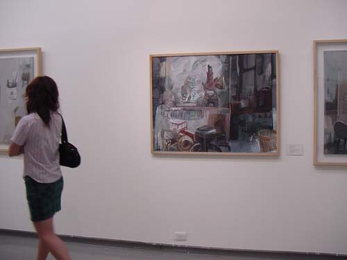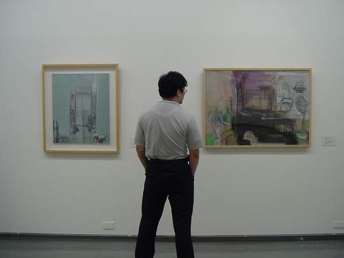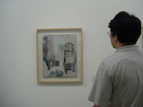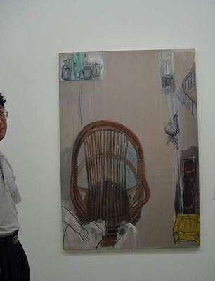 幾間展覽室走完後,我被一個女人無法言說、卻從畫中充分表達出來的真實給震撼了,我離開後,她的畫仍在我腦海跟我說話,以致於我有一股衝動,想要好好介紹她的藝術作品。我認為李錦繡的作品,雖然很容易被以女性主義觀點討論,但她的作品絕不能只以女性主義角度來解讀,因為她的作品可能產生的多元詮釋,絕對要豐富很多。我想,成為一個女人之前,得先是成為一個人。 她的作品最震撼我的,是自我與空間的那股強烈的渴望。何以最具親密關係的家族與婚姻聯繫,是這麼的虛幻、不快樂?何以在1992到1993之間出現一股裂斷,大自然中樹木的生命力不見了,空間擁擠到被物件塞滿,自我表達也僅剩下腳與竹板凳?我更想探問的是,到底她筆下充滿爆破生命力的樹木、與空板凳,哪一種更在吶喊自我? 儘管我並不打算以女性主義角度,來解釋李錦繡藝術作品拋擲出來的問題,但我仍以文化觀察的角度,暫時借用女性主義批評家ElaoneMarks的理論,他說:「何處有壓抑,何處就有女性。」在壓抑論的基礎下,發現女性在傳統中呈現出來的沈默與缺席,其實有其隱含的不可知性與多元性,這些沈默與缺席,頻頻在問:「我是誰?我在和誰說話?」 空的竹板凳立刻讓我感受到的,就是壓抑,對空間與自我的探索表達,也是不停的在追問:「我是誰?我在和誰說話?」從她畫中丈夫背對她的身影,這個問題李錦繡不只在問自己、也是在問丈夫。