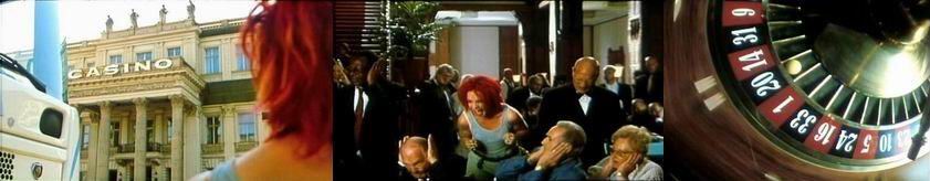電影敘事抽絲剝繭,強調的是:機運的人生觀。 蘿拉總共跑了三次。這三次奔跑的差別,關鍵是在蘿拉在下樓梯途中遇見狗,她跟狗是怎樣互動的。她是一驚閃過、她是被嚇到、或她是反擊,三種不一樣的態度,造成她、曼尼、與她沿路碰到的人,命運有完全不一樣的結果。蘿拉沿路碰到的人,都在遊戲重玩三次中,有了三種不同的結果。