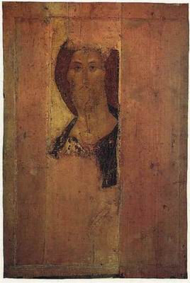 天使兩兩低頭輕聲交談,充滿了至深的人性和愛的莊嚴,漂亮的臉頰瘦削,富感情而優雅,也證明了莫斯科在當時社會文化的高水準。這些面容表達了各種微妙的人性表情、由衷的溫柔和內在力量。構圖的奔放、情感的豐富傳達了崇高的理想:人類如兄弟般的團結、愛與和平,這對當時的俄國是很切身的,因為封建荼毒妨礙了俄羅斯的統一。 15世紀被稱為古俄羅斯的黃金時期,莫斯科畫派即以魯布列夫為首,技法熟練,構圖講究,形體飽滿,色彩和諧,超越了同時代其他地方畫派。