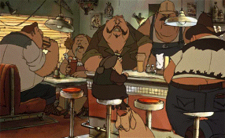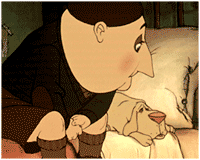 當船即將進入某個大都市的港口,眼前赫然出現一尊肥滋滋拿著火炬的女神雕像時,看懂的人不禁會心一笑,劇情內雖然沒有明講這是哪一個國家,也故意採用世界各大都市裡不同風格的建物景觀,讓觀眾既有似曾相識的感覺,又不能肯定地判別這是哪一個大城市,但是街道上的英文招牌、漢堡餐、身形碩大的男女老少,的確很符合歐洲人眼中的美國,在幕後花絮中,溫和的導演嘴角藏不住一絲笑意,解釋說動畫裡的大都市,是一個很保護消費者權利的地方,兩相對照之下,答案應該是呼之欲出。墨鏡、有壂肩的黑大衣、小鬍子,這些黑幫隨從典型的特徵被導演設計成幾近四方形的黑色圖形,黑幫老大臉上又大又紅的酒糟鼻子,很清楚地告訴觀眾,這個人和酒廠有關係,平日喜歡喝酒,高級餐廳的經理,一看到黑幫老大(貴客)上門時,走路腰部側彎到90度,勢利眼的形象鮮明展現。就是因為導演(原畫者)西拉維修曼獨具創意的造型,細緻的人物表情,所以儘管整部動畫中對白極少,還是能夠讓觀眾了解劇情的來龍去脈。裡面沒有主角人物的內心獨白,沒有迭迭不休的丑角人物,沒有擬人化的動植物提醒你人生的大道理。賓諾雖然是一隻有特殊能力、會做夢的狗,但牠還是只會汪汪叫,需要食物做為牠奮勇向前的動力。動畫裡的英雄不是年輕力壯的男性,而是一群上了年紀的老太婆,一隻胖狗,男性不是壞蛋,就是等待被救援的對象,他們更為沉默,無力逃脫眼前的困境,他們是隨時都可能送命的可憐蟲。在大逃亡的過程中,節奏刺激,招式出奇,笑果不斷,也不避諱人夾在車窗中,任由翻覆的汽車輾來輾去的殘忍畫面,只不過沒有見血就是了,黑幫電影不都這麼演嗎?車子追撞、爆炸……,但是西拉維的創意,讓這些固有的節點成為搞笑的來源之一。 而由巴黎Xilam動畫公司所製作的【新太空戰士】的劇情相對來說就複雜許多,也許是因為虛構的時空背景下,本來就要花一點力氣去習慣故事裡特有的歷史和世界運作的獨特邏輯,加上人物(或生物)的物種種類多,場景總是昏昏暗暗的話,的確是不太好消化的作品。 故事是敘述有個地方叫阿西斯(Axis),位於兩個星球之間,那是一個長滿了盤根錯節的巨大樹枝,直條狀的區域,居住於其中的族人,最主要的工作就是搜集樹的液體,在祭祠日時獻給『神』(也就是混身金黃液體狀的Selenite族,主要是由一名冷酷而且力量強大的皇后主導,牠們需要樹枝液以便重建城市,並且繁衍下一代。目前暫住在阿西斯的樹根深處),然而樹枝的液體逐漸枯竭,神的需求卻沒有因此而減少,甚至透過祭司,威脅村人必須繳交足夠數量的樹枝液。蓋娜(Kaena)是名喜好探索的女孩子,她時常獨自跑到族人不曾去過的地方,想像著她所聽過的傳說故事是不是真實的,藍色的太陽到底在哪裡,族人所相信的『神』,是不是真的存在,真的會護佑她的族人嗎? 由於一次意外,她結識了另外一種人類(Vecarian族,從遙遠的星球過來,想要尋找更好的居住地),他的名字是阿帕茲(Opaz)。在幾百年前,由於嚴重的飛船爆炸意外,不僅毀了阿西斯上方的Astria星球的 Selenite族人的都市,他們自己這一族的人類也幾乎全數罹難,他是唯一的倖存著,全身由金屬所構成,泛著藍色的冷光。原本他打算建造新的飛行船,看看是否能再回到故鄉,但是隨著時光流逝,他的身體狀況越來越差,然而飛行船修復的日子仍然遙遙無期。由於那一次爆炸意外,造成Selenite族人瀕臨滅亡,卻也創造了阿西斯村人,因此,阿帕茲看到蓋娜,心裡是很高興的,當阿西斯村莊發生危險時,他願意陪著蓋娜前往救援,並且尋找整個星球記憶所在的「儲存體」。 透過阿西斯祭司之口,我們可以了解到這個村落大部分人所持的信仰態度是:人生最重要的就是為上帝服務,這樣的信仰,是為了生存而進行的戰鬥,在這樣的過程當中,不能有所懷疑,否則就會激怒上帝,所有人應該把命運放在上帝的手裡,如果有災難發生,是上帝為了要考驗族人的信心。在危急的時候(例如聖殿開始在倒塌,巨大的石塊落下),誰把腳步挪開,誰就是對上帝沒有信心。結果,祭司說完話之後,他挪動了腳步,躲在大石頭邊,當蓋娜問他為什麼他的言行不一時,祭司辯解道:「是上帝讓我挪開了,他指引我移開腳步,是他拯救了我。」,蓋娜再反問:「為什麼我的父母移開腳步,你就說他們信心不夠純潔?」祭司再度反駁:「你的父母會遇難,那是因為他們信仰不虔誠,這樣的人上帝是不會保護他們的。」憤怒的蓋娜說:「上帝根本不會保護我們,根本就沒有上帝!」祭司的說詞,除了替他自己的行為找到推託的藉口之外,還透露出一個重要的訊息:人對於禍福所持的解釋不外乎「如果你有神的祝福,你就會萬事亨通」;「如果你諸事不順,甚至災難臨頭,一定是你做了什麼壞事,所以老天在懲罰你」;「相信上帝(信仰虔誠)的情況下,都還會發生這麼悲慘的事,上帝一定沒有照顧我,這個世界上根本沒有上帝!」 在這部動畫中,最後是以「自由」來解決這個生命的大疑問,蓋娜成為領袖之後,她對族人說,「我的知識和能力是屬於全體的,我和你們都一樣,從此之後,我們擁有自由,可以探索新的世界。」然後眾人向未知的雲端深處邁進。在雲端之後,是理想國的實現?還是「尋向所誌,遂迷不復得路」的桃花源呢? 和【佳麗村三姐妹】一樣的地方是,兩部動畫裡的英雄人物都是女性,不是靠重型武器,渾身肌肉,高科技衛星導航系統,或是功