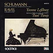 1974年之前的出版,屬於法國廣播局的資料,七○年的兩首協奏曲,與著名的法國指揮家帕黑合作,當時七十二歲的蕾菲布和八十四高齡的帕黑,兩位法國音樂界老大師的合作當然引起不小的矚目,他們在舒曼協奏曲裡展現了無比的熱情,更重要的則是氣質的契合,鋼琴隨心所欲的起伏、推進、富有詩意與微妙的色彩變化,樂團悠揚的與鋼琴唱和,這是壯盛而豐美的舒曼,沒有一絲一毫的遲暮氣息;而在拉威爾的協奏曲中,兩位大師一轉而表現得古典而節制,這是他們時代的音樂!是的,還有什麼能比這兩人演出的拉威爾協奏曲更有資格被稱為"權威"呢?