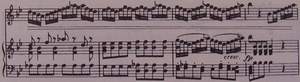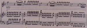 這些樂段正如豎笛協奏曲一般,雖然全曲有室內樂化的現象,但是仍有幾段交響樂化的樂段來豐富音樂的內容。這種樂段往往極容易吸引人的立即注意,從魔鬼般的超技小提琴家帕格尼尼經過鋼琴大師李斯特迄今的小提琴大師海費茲,超技的表達一向擁有絕佳的情緒動力而容易討好欣賞者。