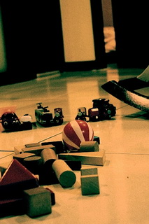 我們回到客廳,負責拍照的雨漣和阿祥哥開始忙著製造混亂,灑一地積木,搬出搖搖木馬,兩人拿著相機東倒西歪地取景;我則和兩個小孩玩著,看《玩具總動員》。那天下午,我們拍到非常成功的相片!