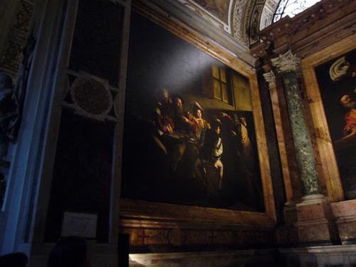 在羅馬,我們脫隊(拜我老公是領隊,他實在熬不住老婆撒嬌之賜。)刻意去一個不愛藝術的觀光客絕不會去的小教堂,就為卡拉瓦喬這幅真跡: