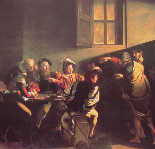 (請參考圖冊中拍下來的卡拉瓦喬「利未蒙召」)