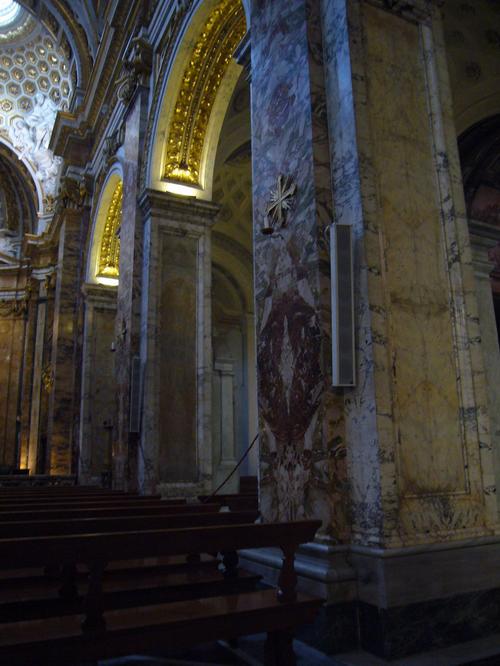 跟這畫對襯的,是音樂。音樂一樣讓我震撼!因為這教堂若干廊柱、若干拱頂、若干牆邊,都放了跟建築對襯的長方形貼牆喇叭,因此環場全是文藝復興時期對位的人聲清唱。喇叭跟建築形成對襯的美感,一如對位人聲音樂。