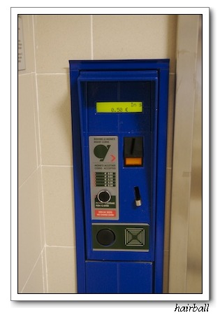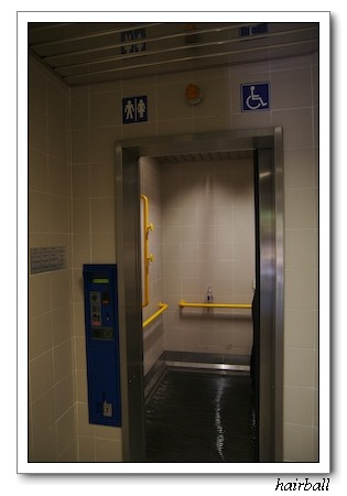 是的,我們就是要去用廁所。到了地鐵站,研究了一下說明,使用廁所的費用是50cents歐元,先在地鐵站的書報攤換了一下零錢,就到廁所前面研究一番。