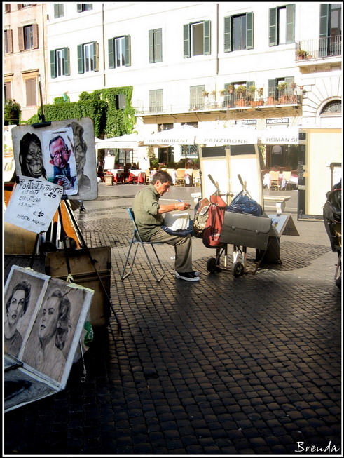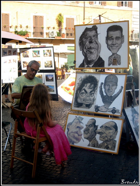 除了街頭餐廳,供遊客們飲食休憩,最特別的就是有很多街頭畫家。尤其如果不趕時間,當場坐下來,耐心等候些許時間,就有一張漫畫肖像畫可以帶回家做紀念品。