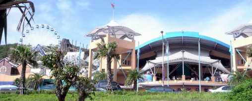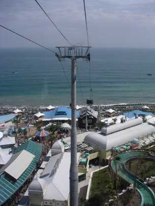 從纜車上看太平洋真的很美,居高臨下一覽無遺,也可以看到整個園區的建設,正當我們坐的纜車上升到最高點時,纜車突然停住不動了!