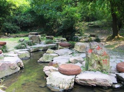王羲之鑿了個像「之」型的池子,將酒杯盛了酒,逐水漂流,大家順池邊或躺或作,誰人面前有杯子擱淺停住不再飄,便書法詩詞。