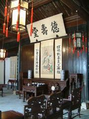 這是一種勁較筆法的方式,最德高望重的人坐在中間,旁邊四方迴廊中,安放桌椅筆墨,居中這位德高望重的人負責開筆,然後大家各自書寫,最後較勁筆墨詩詞。這場景,讓我想到紅樓夢中榮昇貴妃的元春回賈府省親,要寶玉和其他姊妹們為大觀園提詩,較勁詩詞筆墨,場景大約就是如此。