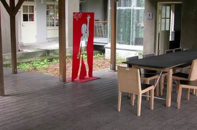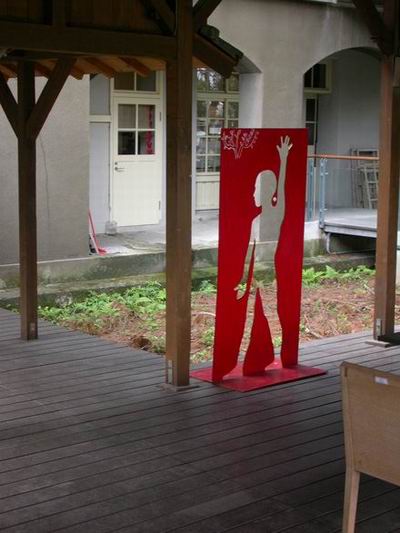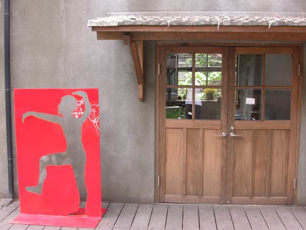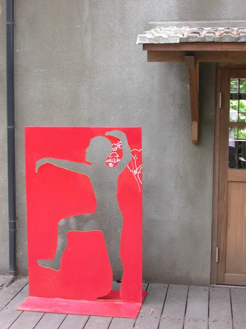 眼球震撼了一下....這裡要讓我感官運動的東西還真不少!大紅的鏤空鐵板就這麼大剌剌的站在這裡嚇人。配合著廁所的出口,好像剛從廁所飄行出來的鬼魂。忍不住罵他: