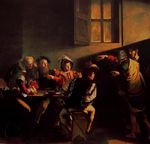 卡拉瓦喬是個生性叛逆又狂妄的人,他出生平民,許多在當時社會不被重視的中下階級甚至流氓、賭徒對他來說都是生活裡重要的朋友。他經常畫這類的市井小民寫真,一群喝酒作樂的少年,正幫人算命的吉普賽女郎,打牌作弊的賭徒....一方面總是試圖捕捉一個關鍵性瞬間的姿勢和眼神,來呈現人和人之間互動及心理狀態,讓人一眼就看懂畫中的「故事」,另一方面也透過這種描繪,表現他心中對這些小人物的關懷。