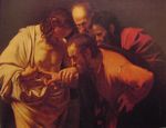 流亡讓卡拉瓦喬對憐憫悲苦、承擔苦難的信仰真意有更深一層的體會,不見得很戲劇性,很強烈震撼。過去走進世俗,撞擊引領人心的基督,如今以柔和謙卑之姿,和人心一同受苦,在患難給予安慰。 |