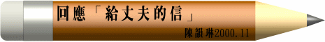 但在針鋒相對中要退讓、愛並接納你,實在不容易,至少我常常在這方面是失敗的。我想你也是回到信仰中「愛妻子愛到捨命」的對丈夫的期許裡,強迫自己退讓的吧?你的退讓常深深刺激著我,我常懊惱自己為何不能更順服些。