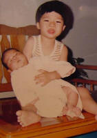 有一次爸爸跟我帶你與阿丁去參加一個教會的退修會。在聚會結束之後,一位姊妹拉著我聊天,我們恰好站在二樓窗口,因此透過玻璃窗,我看見你緊緊握著阿丁的手四處尋找我。你大概是奇怪怎麼大人全湧出場外了,卻沒見到我去接你,因此你著急的四處穿梭,小手緊緊握住阿丁的手;阿丁則是懵懵懂懂無知的只知尾隨。我看得真是心底甜蜜,因此趕快中斷話題,跑下樓去大喊:「媽媽在這裡。」而你看到我,便拉了阿丁,滿面笑容的快快跑來。 |